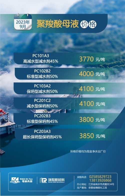 【聚羧酸系减水剂母液月度最新价格】丨2023年9月