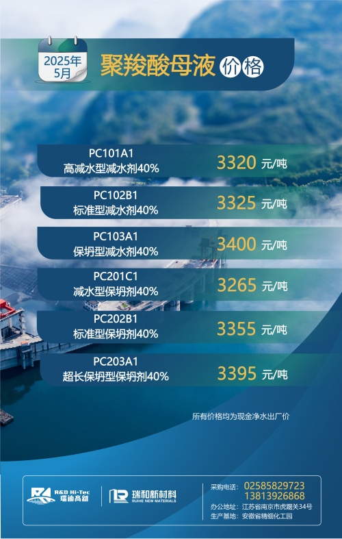 【聚羧酸系减水剂母液月度最新价格】丨2025年5月