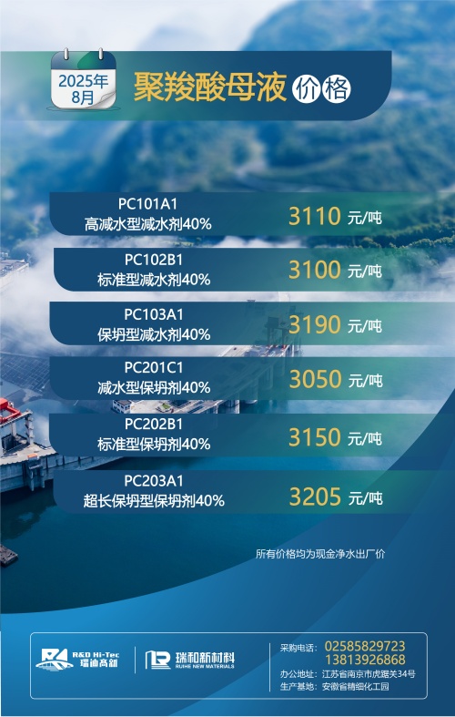 【聚羧酸系减水剂母液月度最新价格】丨2025年8月